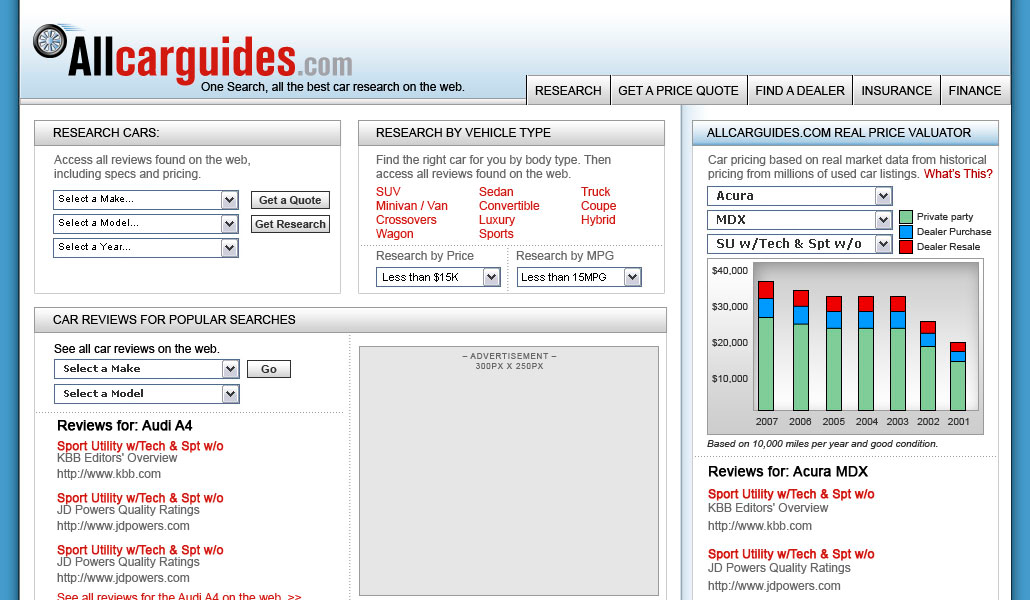 AllCarGuides.com was launching a site to help users research new car purchases. They asked me to develop the branding and UI for their initial product launch.