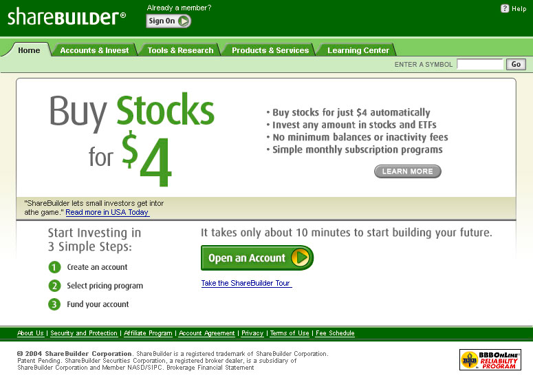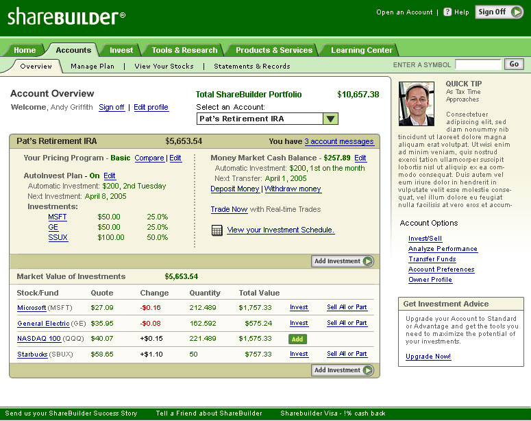 I was fortunate to work with ShareBuilder.com on various UI projects and print-based marketing promotions. These are some of the UI projects completed during their 2005 redesign.